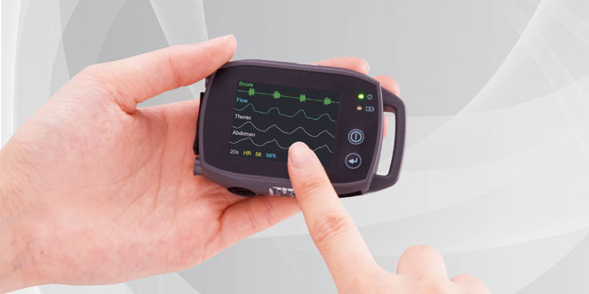 睡眠時無呼吸症候群の診断やCPAP導入されている方に無呼吸の改善の確認および睡眠の質の評価(REM・NREM睡眠の把握)に使用します。